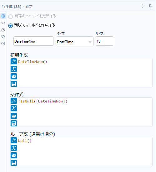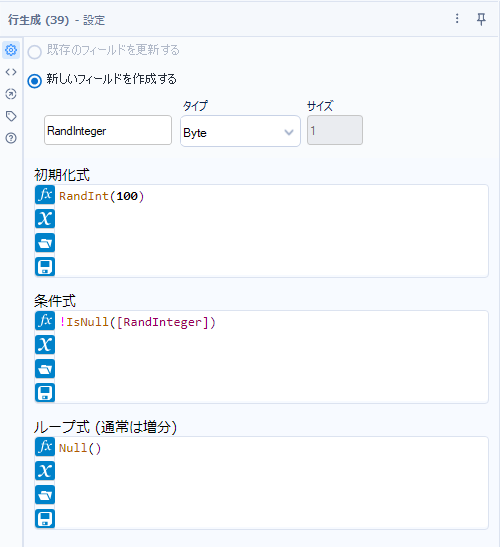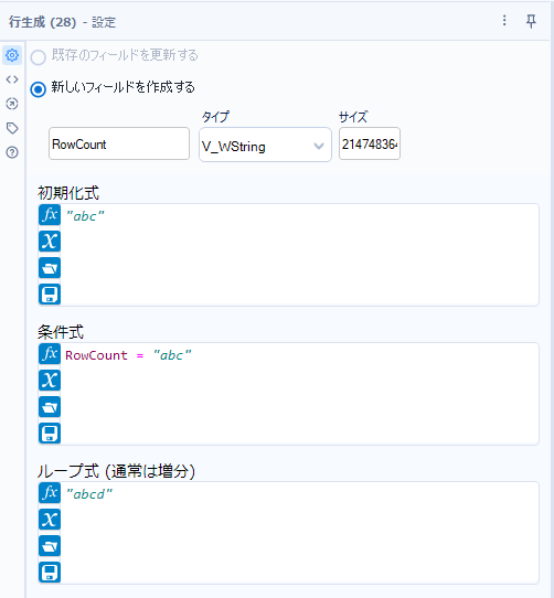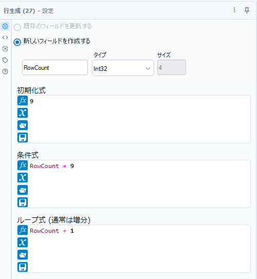 ポイントは、ループ式で値を何かしら変えることです。ループ式で何も値が変わらない行は生成されません。