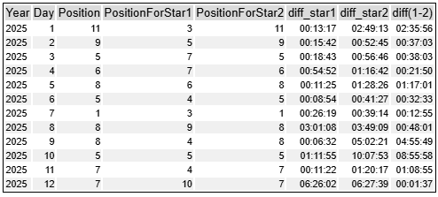 Day9、11、12は実際の難易度と見せかけの難易度が大きく異なる問題です。しっかりしたアルゴリズムが必要になるわけではなく、実際のデータは単純だった、ということです。AIだましのテクニックのひとつなのかもしれませんが、よくデータを確認しましょう、ということでしょうね・・・。この中でも11は少し傾向が違いますが、データ爆発の処理をうまくやればあっという間に答えが出てしまう、というのは面白いトリックでした(過去にもありましたが、これだけ単純化されるパターンはなかったように思います)。
