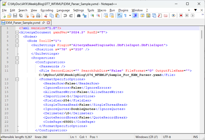 Actually, the Alteryx workflow file “yxmd” is XML file format. Let’s open them by notepad.