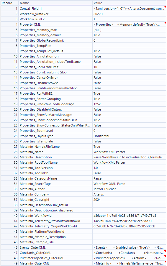 Do you know the Workflow XML Parser tool which is released at the Alteryx Marketplace? This tool is for analysing the Alteryx workflow files themselves. This tool is compatible with Designer 2022.1 and later.